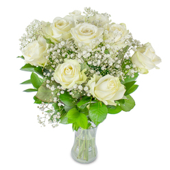 This captivating heart-shaped rose arrangement, crafted by skilled Maida Vale florists, radiates an opulent elegance reminiscent of the neighbourhood's leafy avenues and tranquil gardens. Two dozen or more ivory and white roses, their velvety petals both tightly furled and softly unfurling, are arranged in a generous, domed cascade within a sturdy, matte black gift box. Accents of subtle green at the petal bases accentuate their youthful freshness, each bloom arranged to showcase a natural, abundant beauty. A bold red satin ribbon wraps the base, tied with a spirited bow whose glossy finish and draping ends sweep gracefully to the left, offering a classic hint of romance and celebration. Illuminated by even, natural light, the delicate textures of the roses and the silky sheen of the ribbon are clearly visible, set against a brilliant white background that draws every gaze to the composition. The arrangement conjures a mood of sophisticated devotion-perfect for sharing sentiments of love on Valentine's Day, memories at a Maida Vale wedding near Paddington Recreation Ground, or heartfelt sympathies during moments of remembrance. The fragrant bouquet, designed for both grand gestures and intimate tokens, resonates with quiet luxury and the enduring spirit of the Maida Vale community.