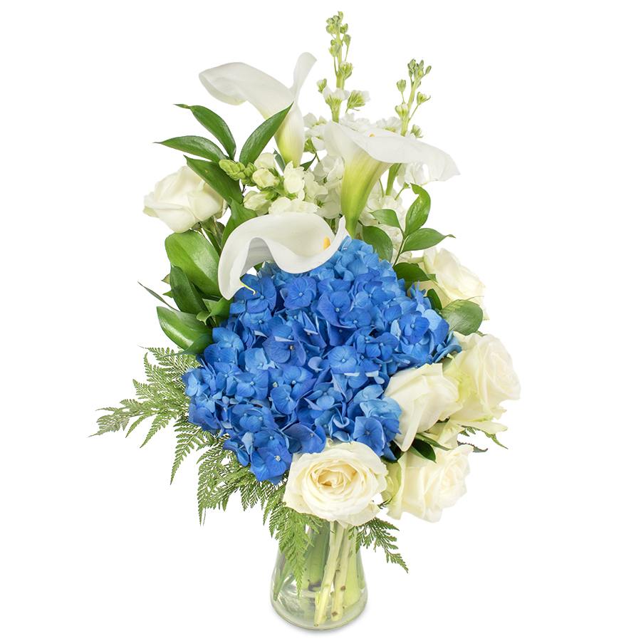 Consisting of elegant calla lilies, roses, stock and hydrangea, this delicate mix of flowers will certainly make a lasting impression! This floral treasure will definitely steal the show!